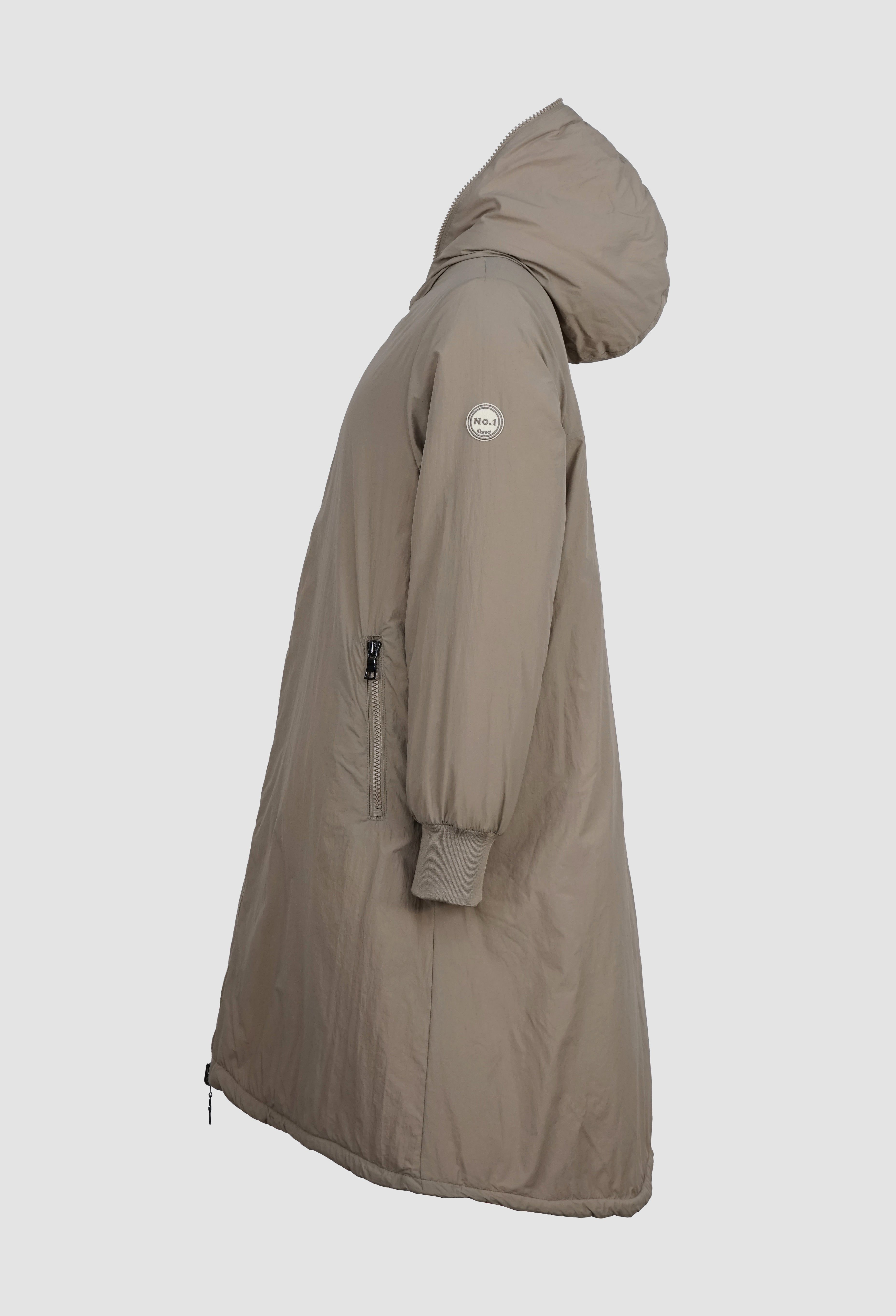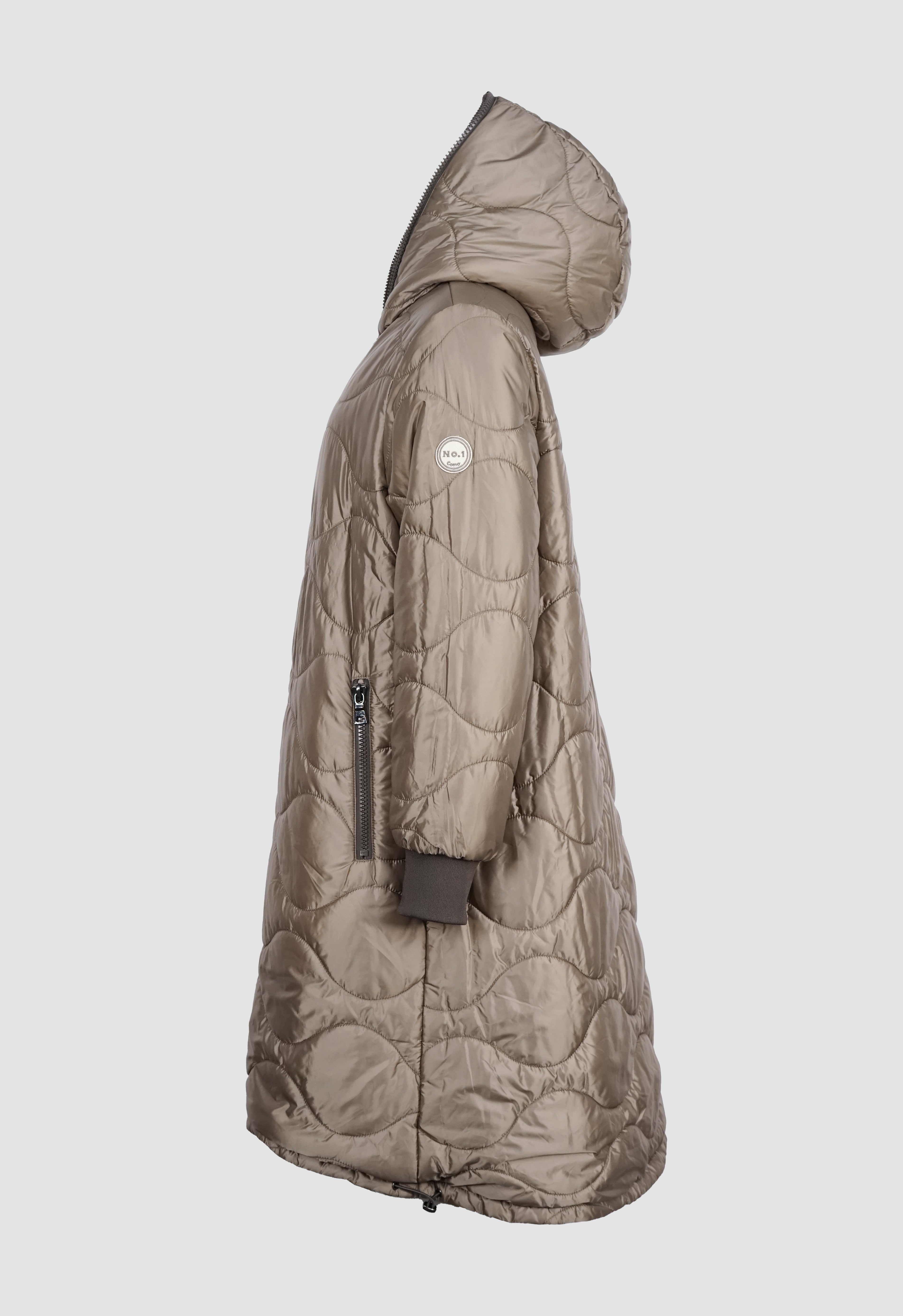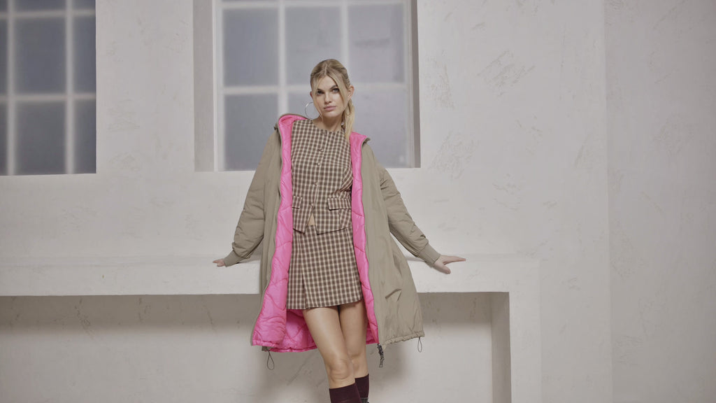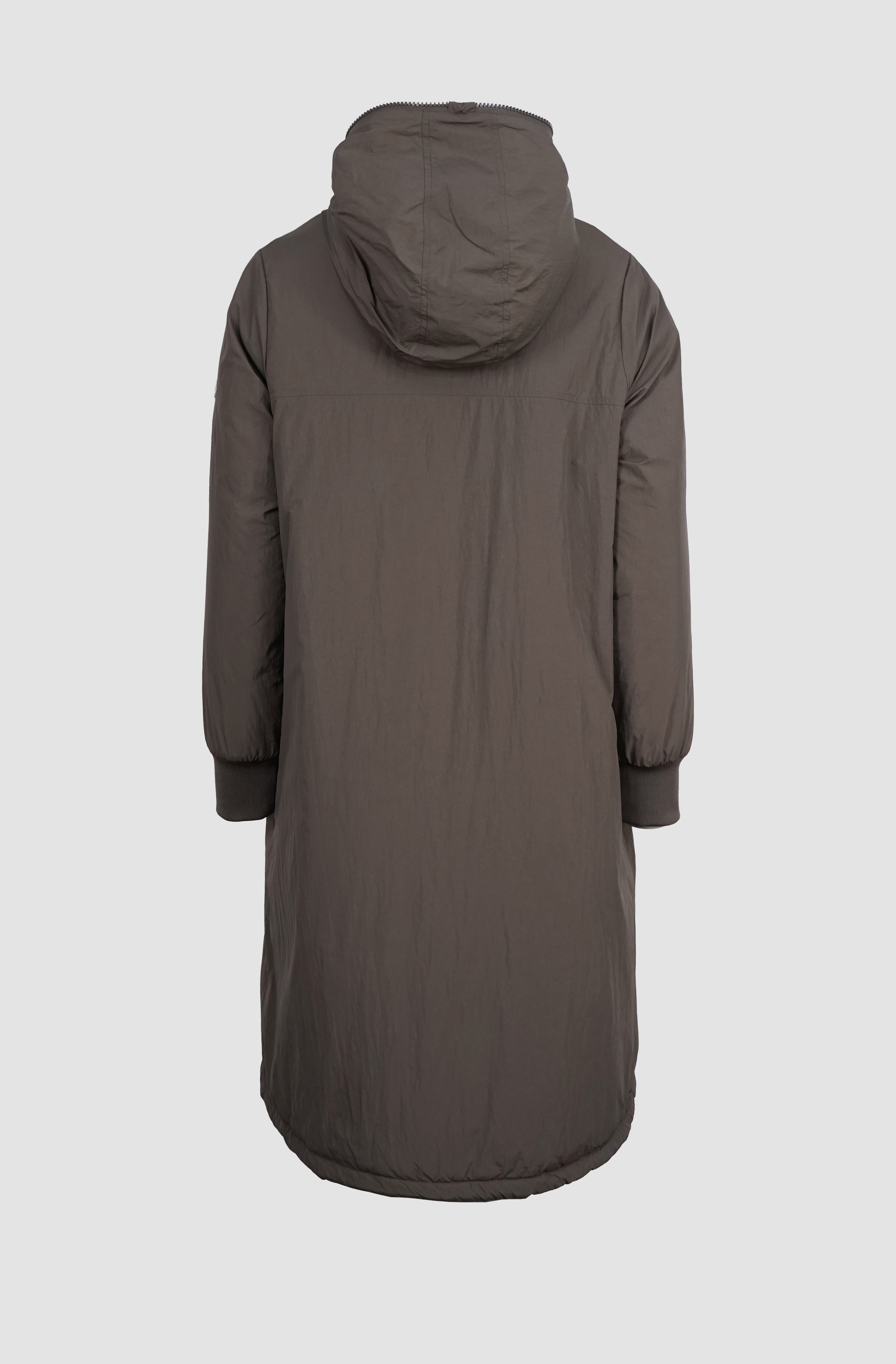 NORA ist ein Wendemantel, der dir zwei Looks in einem Modell bietet: eine matte, glatte Seite und eine Seite mit Steppoptik und leichtem Glanz. So passt sie sich mühelos deinem Stil an.
