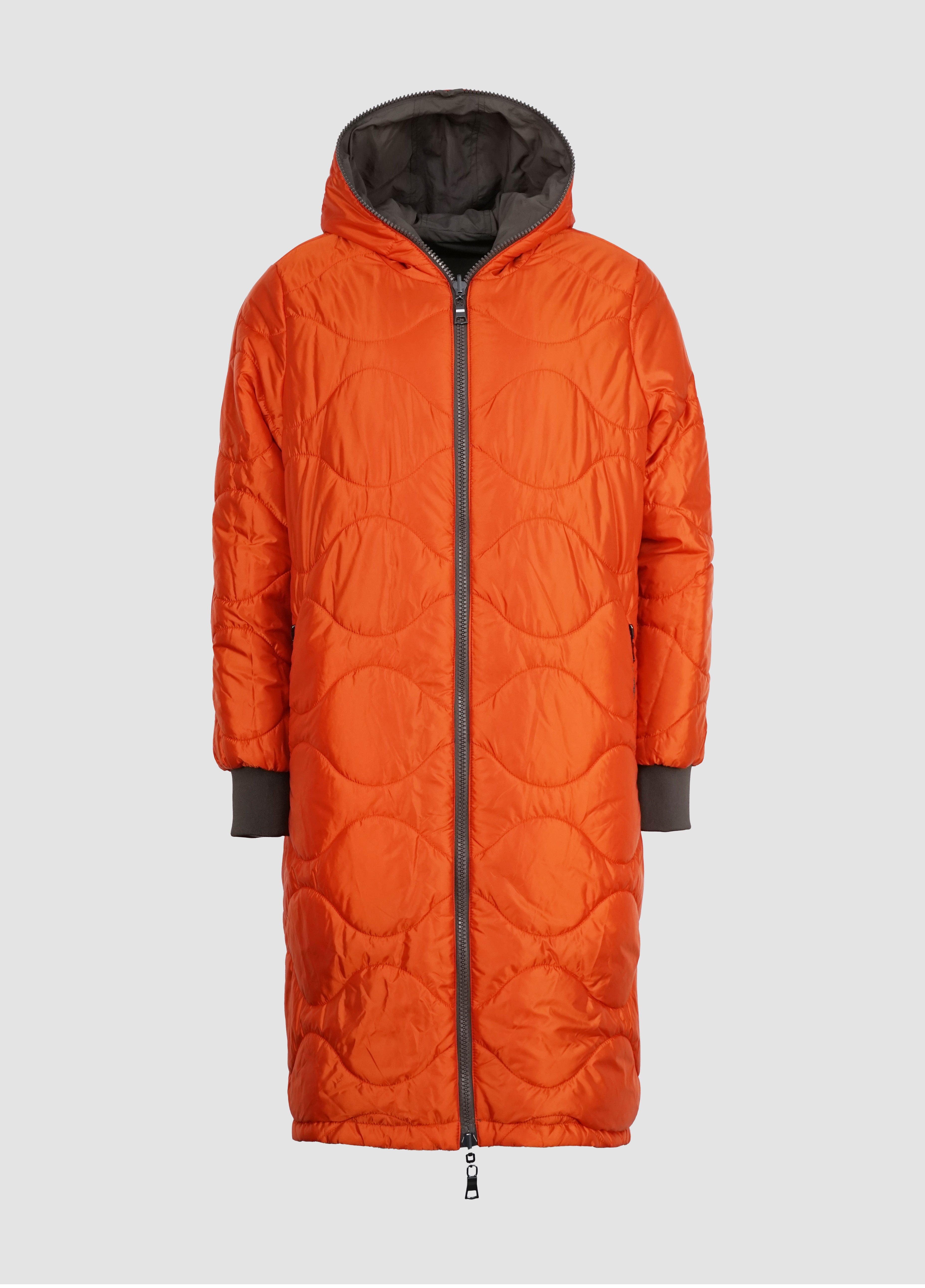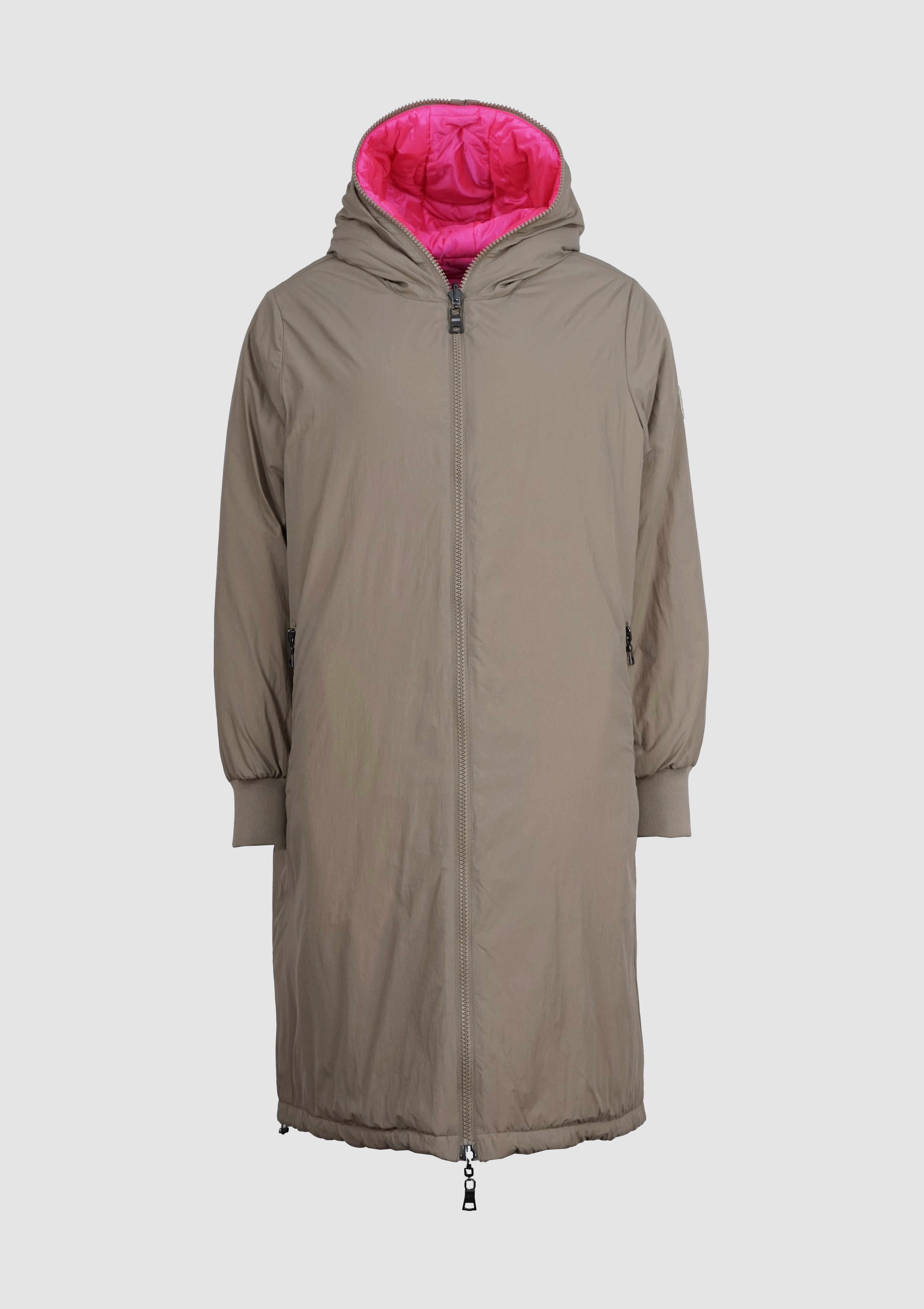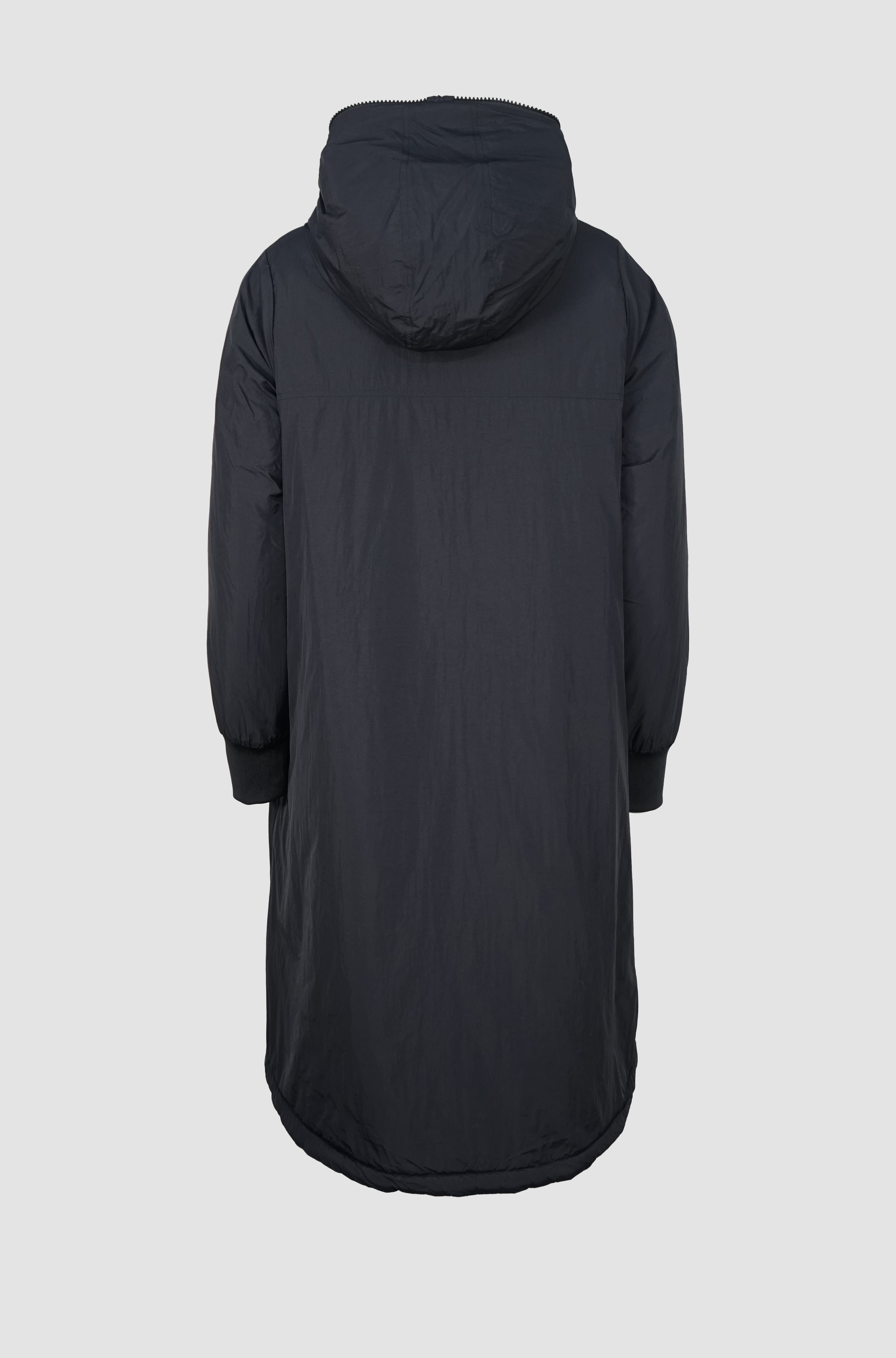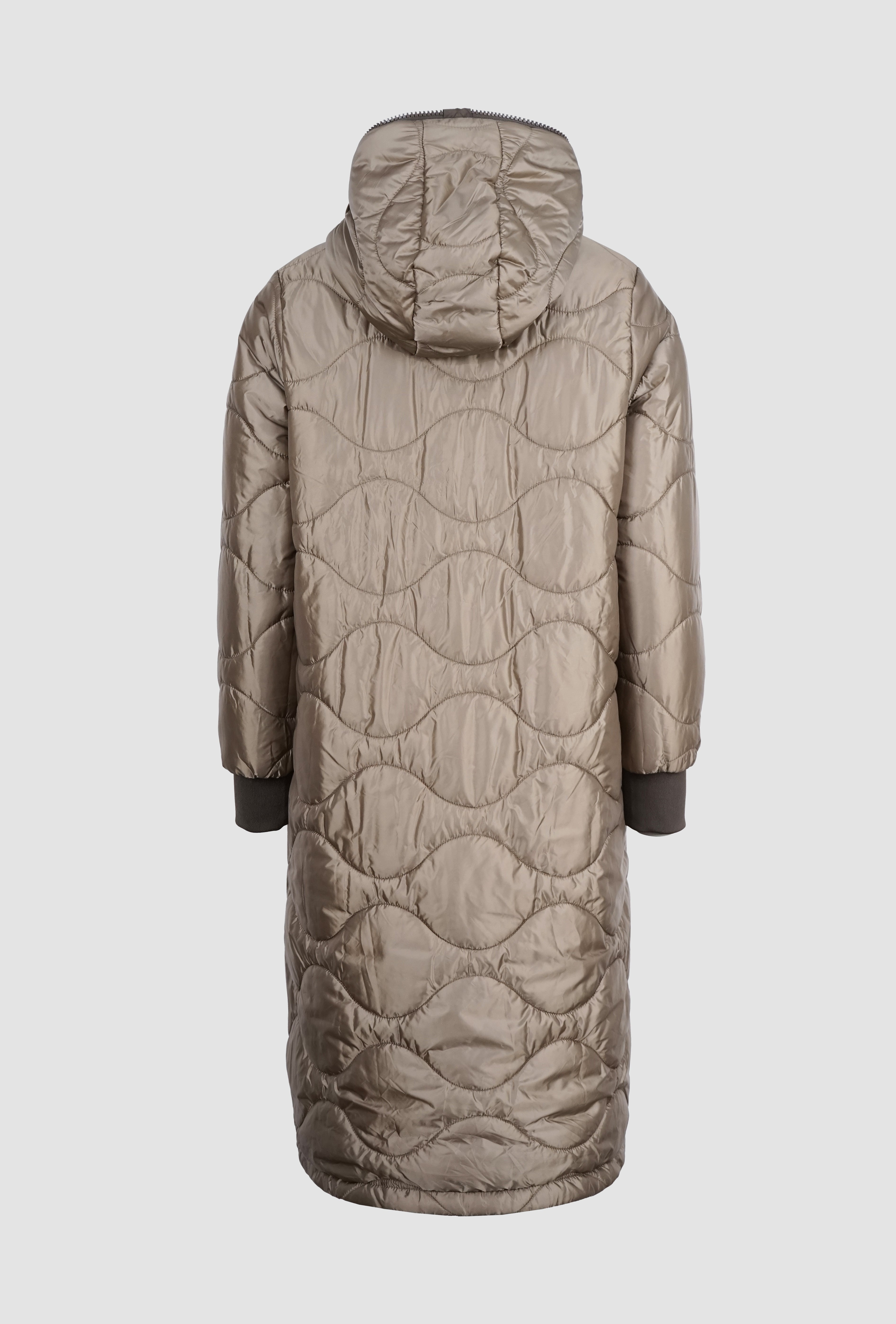 NORA ist ein Wendemantel, der dir zwei Looks in einem Modell bietet: eine matte, glatte Seite und eine Seite mit Steppoptik und leichtem Glanz. So passt sie sich mühelos deinem Stil an.