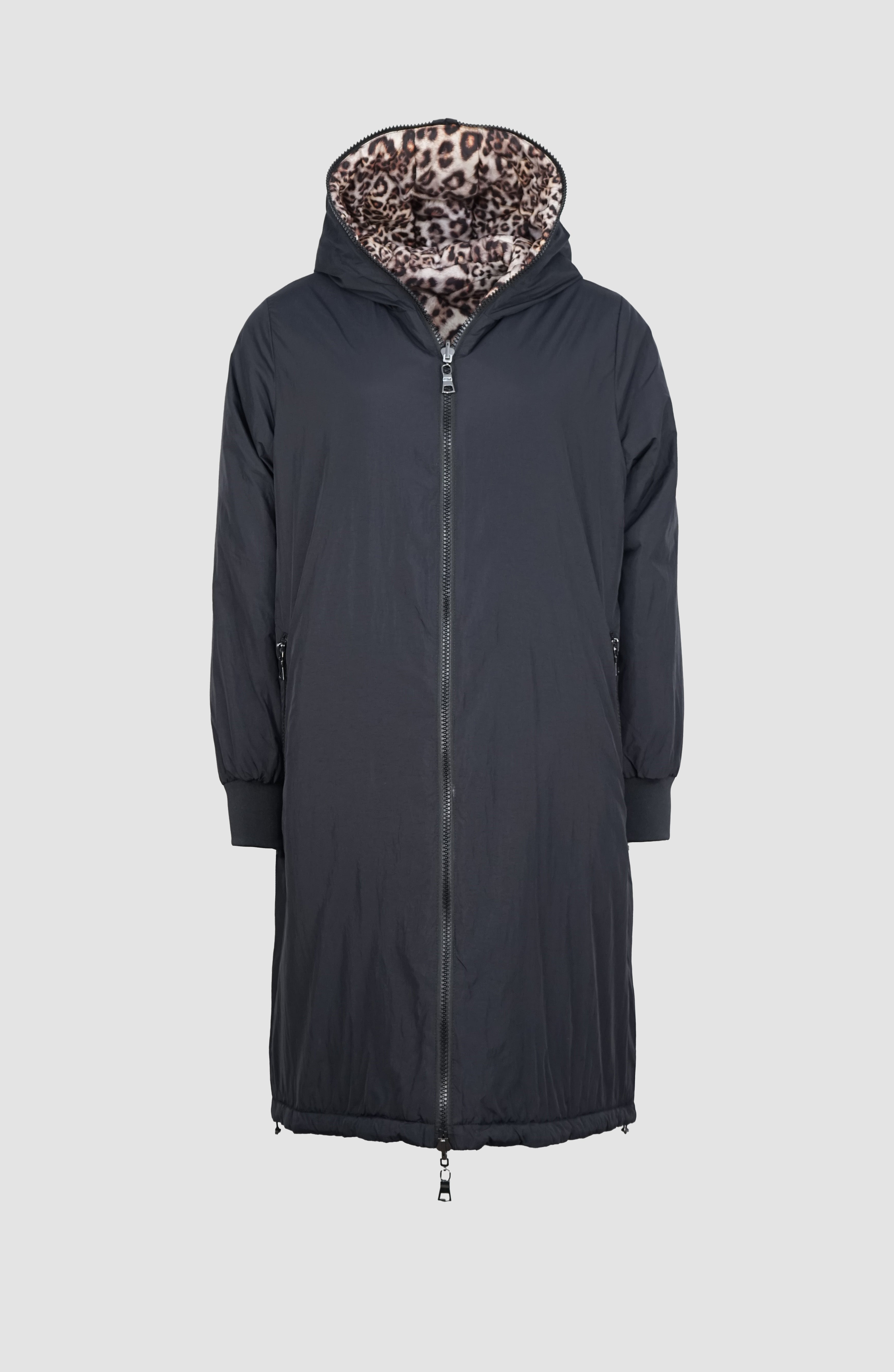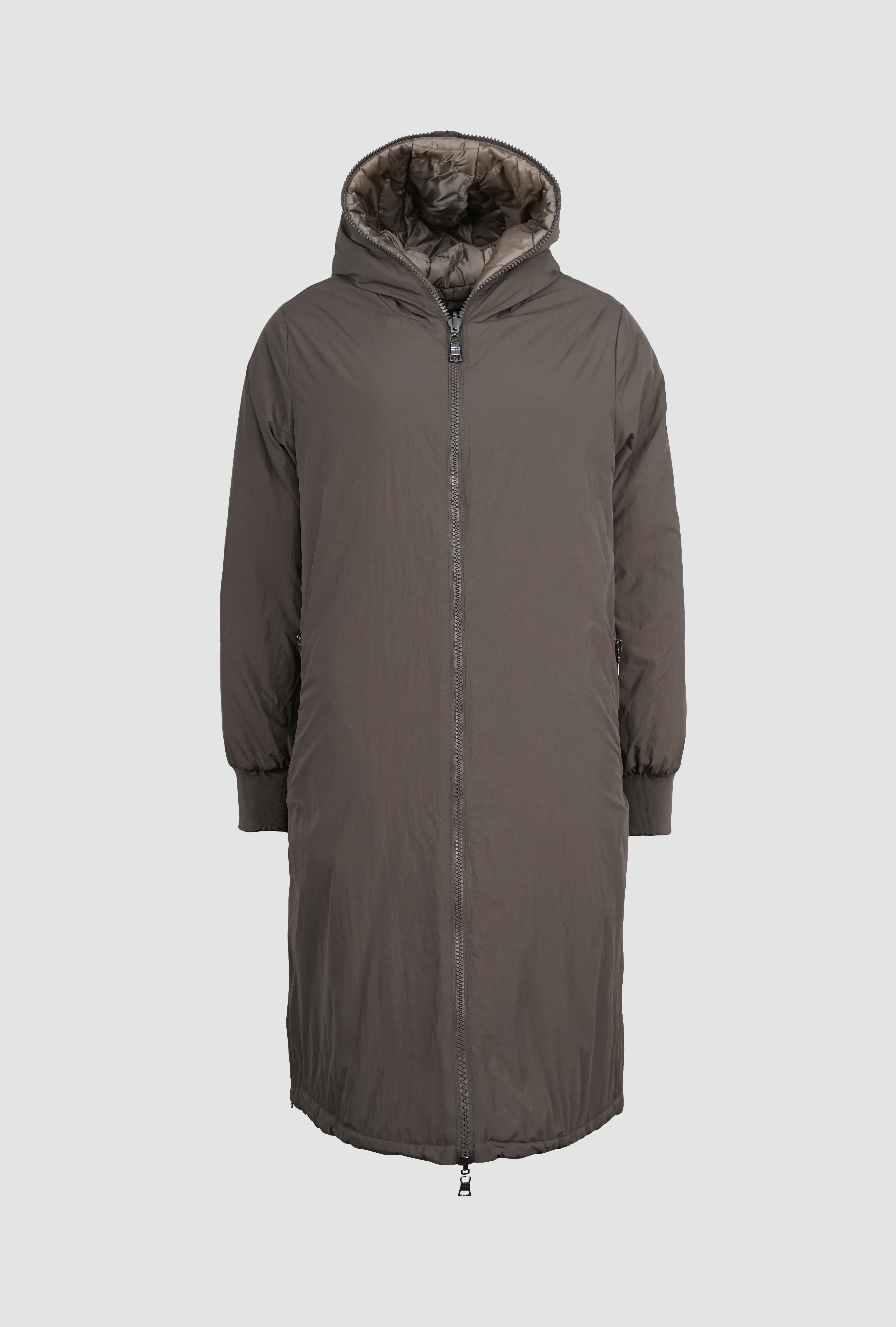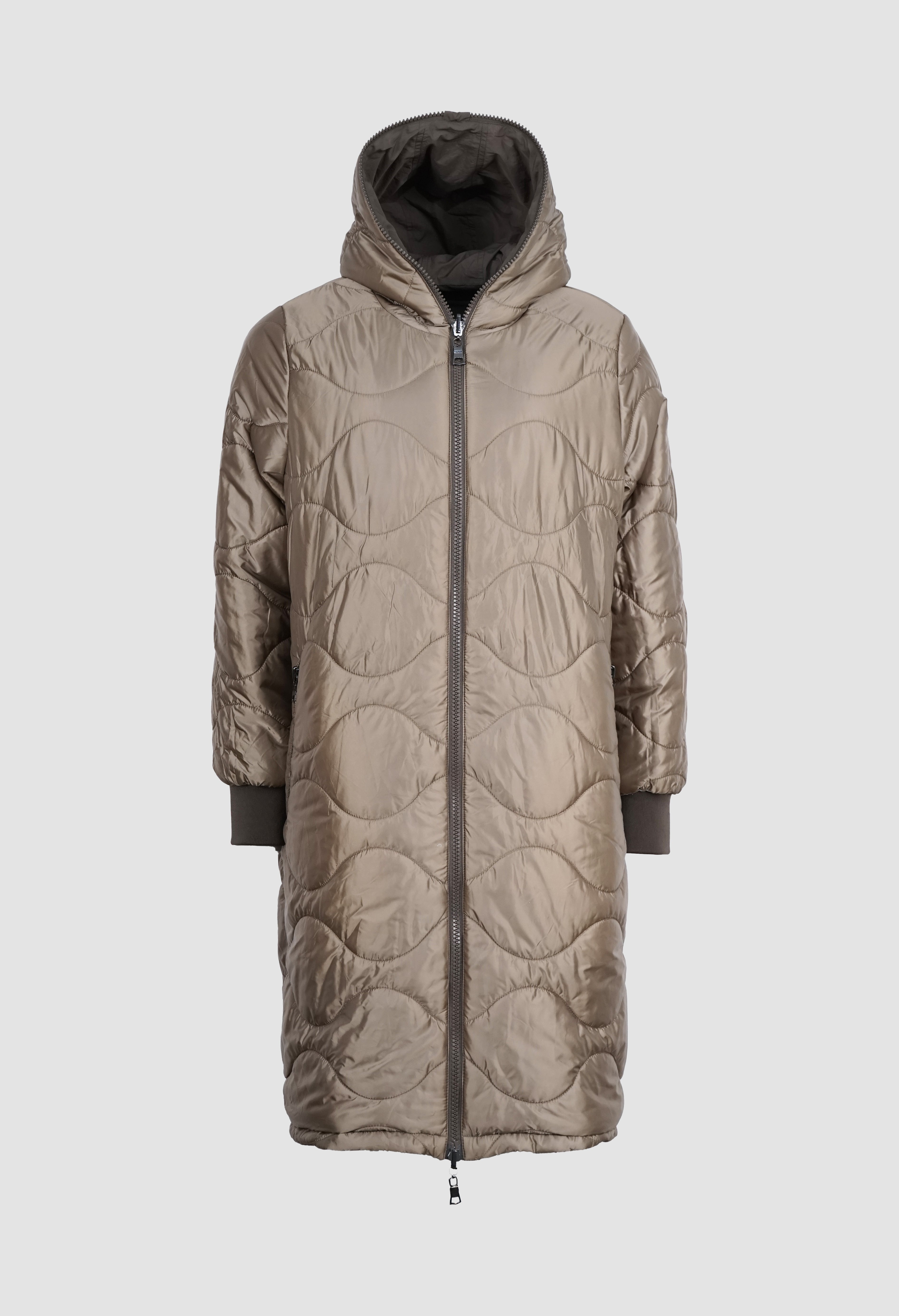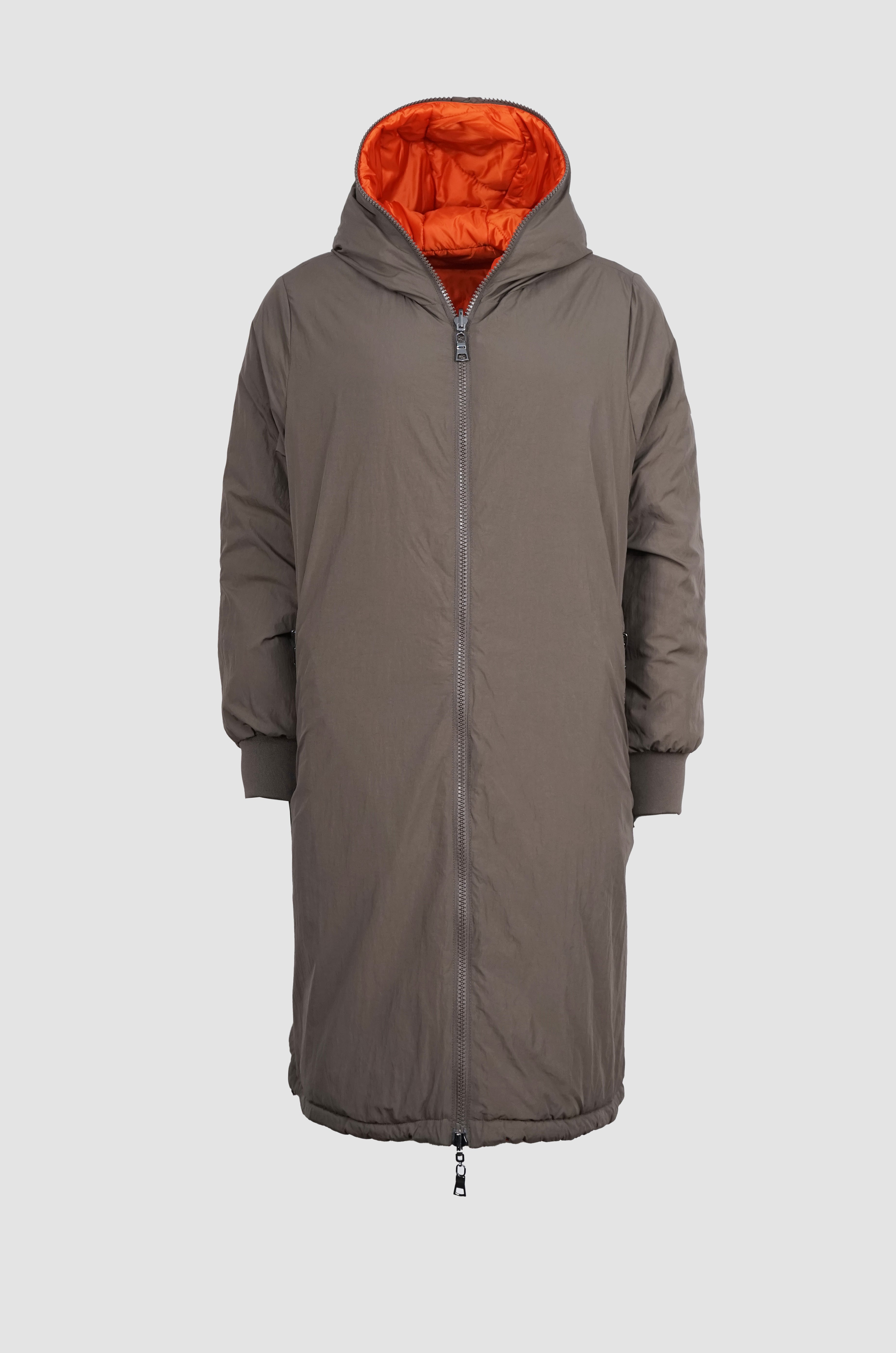 NORA ist ein Wendemantel, der dir zwei Looks in einem Modell bietet: eine matte, glatte Seite und eine Seite mit Steppoptik und leichtem Glanz. So passt sie sich mühelos deinem Stil an.