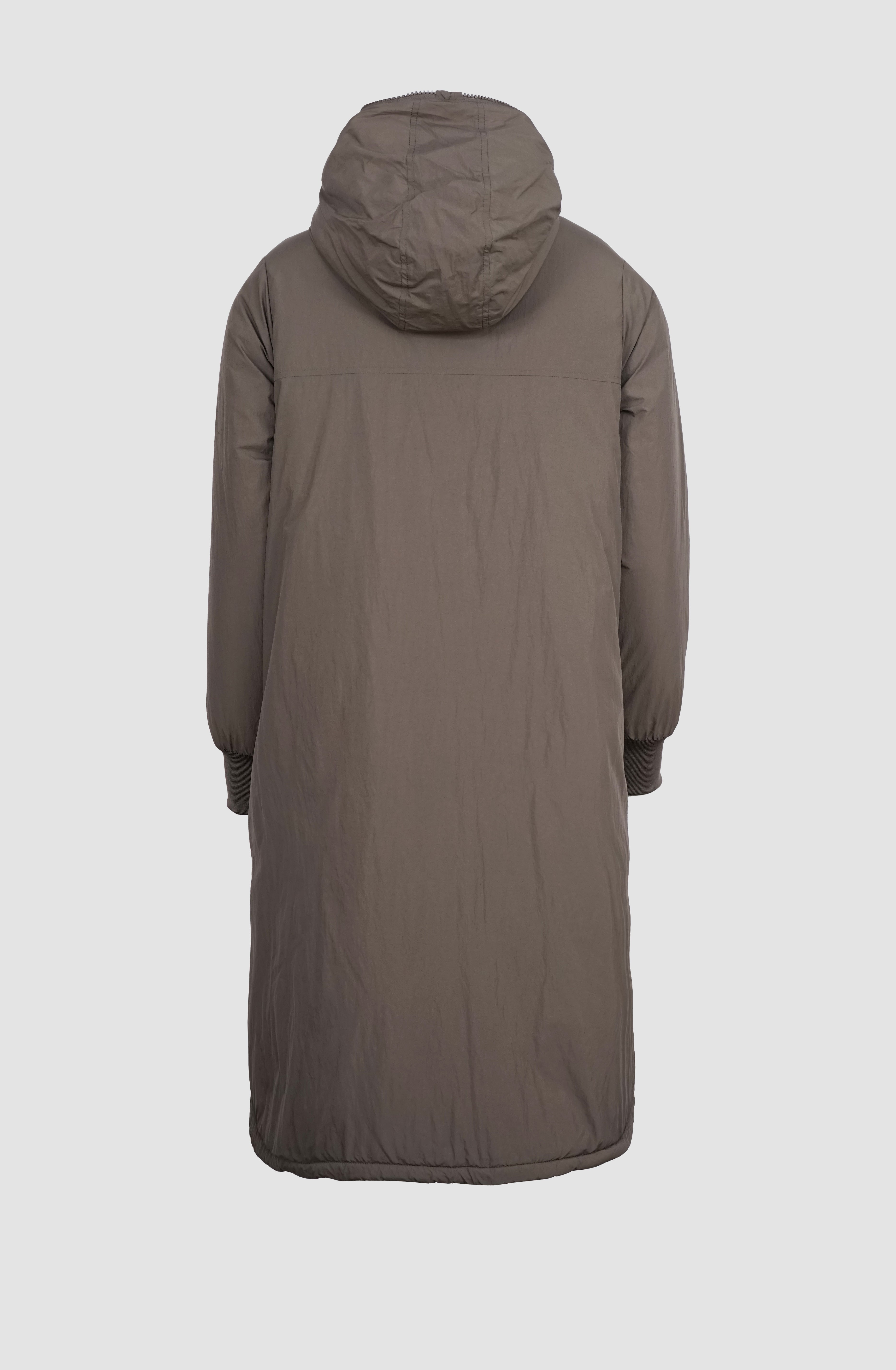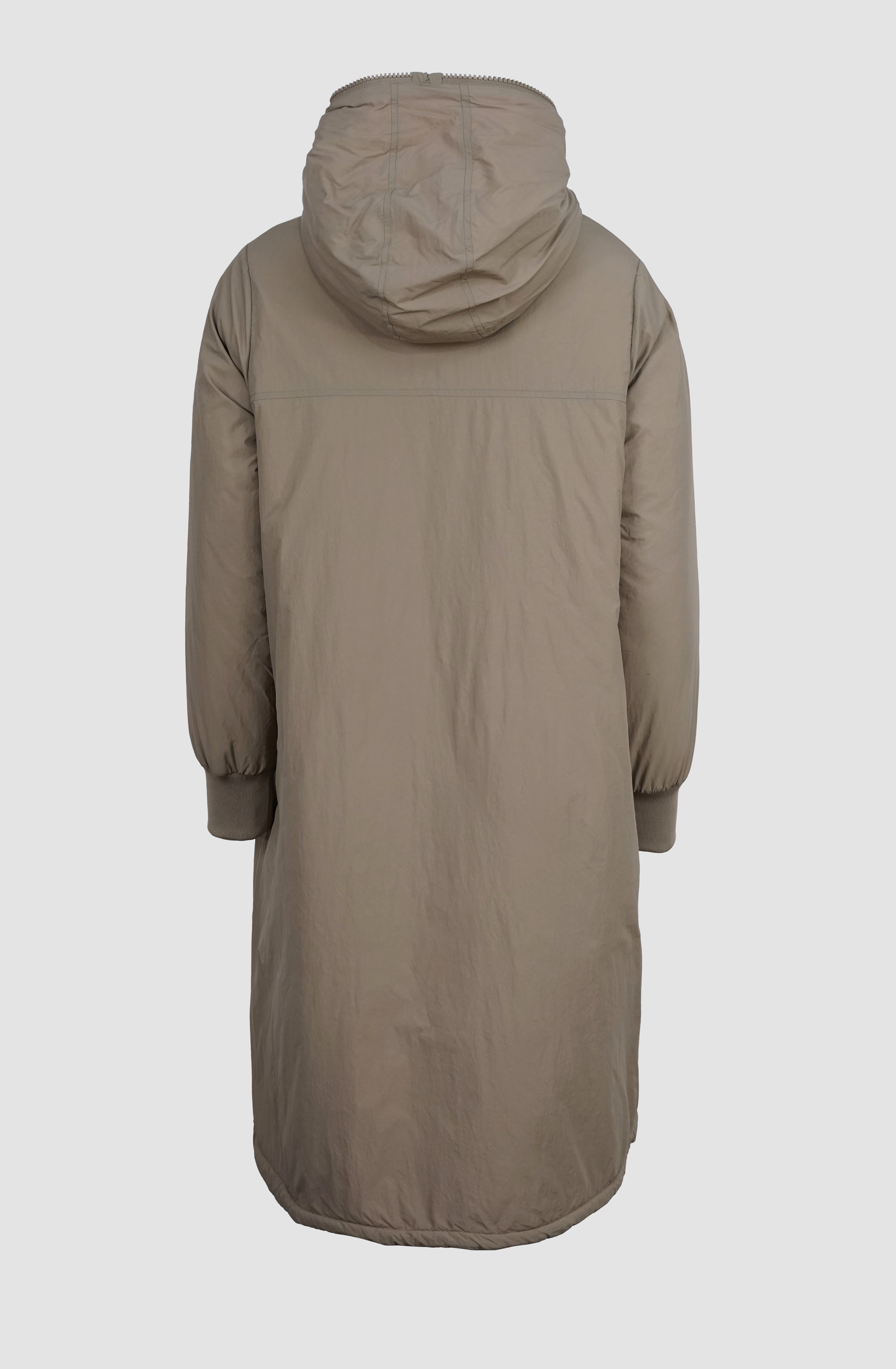 Der oversized Fit sorgt für einen lässigen Fall, die leichte, vegane Wattierung ist ideal für Herbst und Übergang. Mit Zweiwege-Reißverschluss, Taschen auf beiden Trageseiten und einem hinten leicht längeren Schnitt ist NORA funktional und modern zugleich.